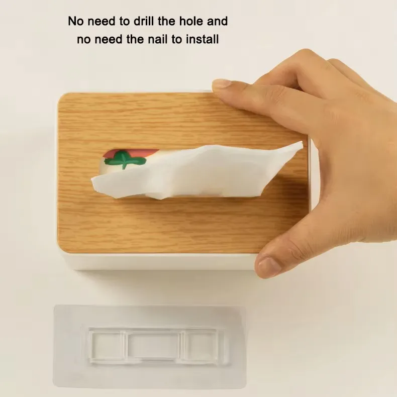 As a professional tissue paper box wholesale supplier, we offer OEM/ODM service at factory price with low MOQ and free samples. Made of thickened PP in wooden grain design, featuring smooth edges, waterproof wall-mounted installation, and built-in spring for easy tissue pulling.