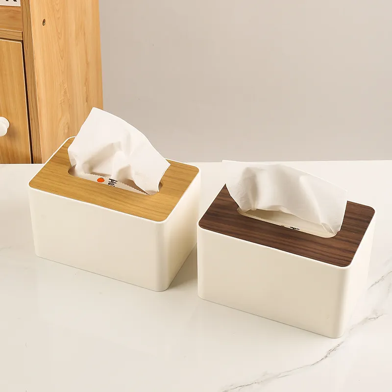 Factory Supply Tissue Paper Box Wholesale, Wooden Grain Plastic Facial Tissue Box
